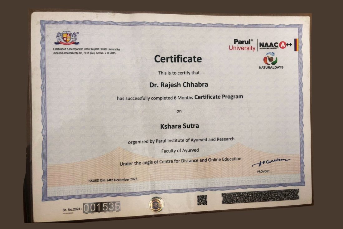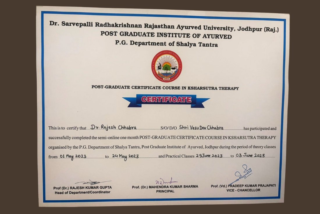Founded and led by Dr. Rajesh Chhabra (BAMS – University of Delhi), a highly experienced and compassionate Ayurvedic physician, the clinic stands as a symbol of excellence in Anorectal and Lifestyle Disease Management. With more than 33 years of clinical experience, Dr. Chhabra has successfully treated thousands of patients through Kshar Sutra therapy, a time-tested Ayurvedic procedure known for its precision, safety, and permanent results — without the need for surgery.